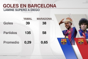 18岁亚马尔已为巴萨攻入39球,巴萨生涯进球数量超越马拉多纳