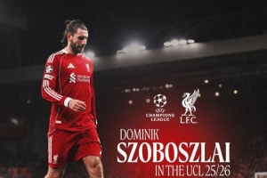 利物浦官方社媒晒出索博斯洛伊本赛季欧冠的数据,8场欧冠比赛,其中7场他参与进球,总计打进4球助攻4次。