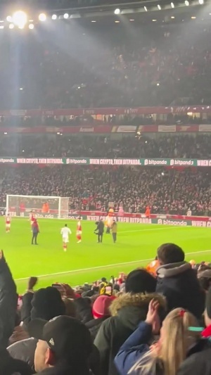 赛后,阿森纳球迷高唱Waka waka改编歌曲称赞哈弗茨:“6000万镑打水漂,哈弗茨又进球了(60 million down the drain, Kai Havertz scores again)。”