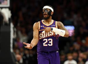 本场比赛,太阳球员古德温发挥出色,尤其是拼抢篮板和防守上表现亮眼,他替补出战23分钟,9中6,三分4中2,罚球4中2砍下16分10篮板(5前场篮板)2助攻5抢断(赛季新高,此前最高3次),正负值+9。