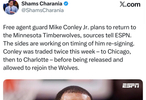 Shams:自由球员后卫迈克·康利计划重返明尼苏达森林狼队,双方正在商讨签约时间。本周康利经历两次交易——先到芝加哥,再到夏洛特——随后被裁,得以重返森林狼。