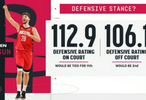 申京在场火箭防守效率(球队百回合失分)112.9,下场后为106.1
