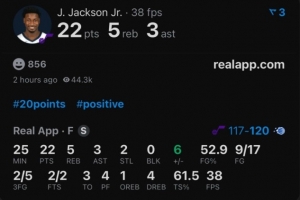 本场比赛,爵士新援小贾伦·杰克逊首秀表现不错,出场25分钟17投9中,三分5中2、罚球2中2拿到22分5篮板3助攻2抢断,正负值+6。
