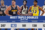 在本场比赛中,约基奇拿到生涯第182次三双,超越奥斯卡·罗伯特森,上升至NBA历史第二。