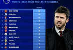 德转发布英超球队近期状态榜(近5轮拿分):曼联以13分领跑,成为过去五轮抢分效率最高的球队;切尔西12分紧随其后,伯恩茅斯以11分位列第三。西汉姆、埃弗顿、布伦特福德同积9分并列其后,阿森纳、曼城和诺丁汉森林则以8分处在追赶集团。