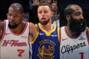 体育资讯11月16日讯 火箭随队记者Bradeaux晒出一项数据显示,杜兰特、库里、哈登目前都场均25+且真实命中率60%+,具体如下: