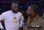 今天湖人比赛前,韦德采访了詹姆斯。