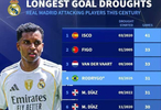 赛后,德转跟进报道,罗德里戈31场进球荒本世纪皇马进攻球员中排名第4长,仅次于41场的伊斯科、33场的菲戈和范德法特,与马里亚诺并列第四。