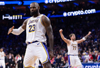 詹皇在决胜时刻连拿10分,最终以17投12中高效轰下29分,率队以112比108击退76人,个人生涯常规赛总胜场数(1015)也升上NBA史上第2。