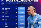 德转更新后英超身价前10:哈兰德2亿欧元第1,利物浦4人上榜