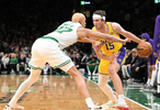 次节湖人进攻起色,但仍旧一直被凯尔特人压制,单节29-30又输1分,半场打完湖人46-69落后23分,最多一度落后29分;上半场湖人全队2人得分上双,里夫斯半场7投2中拿到12分6助攻,次节找回手感。