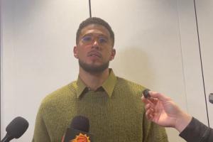 赛后,布克接受采访时谈到了自己对詹姆斯的关键三分犯规。他说道:“他们说我打到他的手肘了,这是在说谎,我回看了的。”