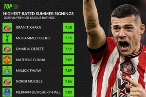 whoscored英超新援评分榜:扎卡居首,库尼亚、佩德罗、埃泽在列