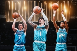 上半场黄蜂三分31中18,命中18记三分球追平了NBA历史半场三分纪录。