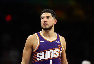 上半场布克出战17分钟,9投5中,三分1中0,罚球4中3砍下13分5助攻2抢断,也有4次失误。