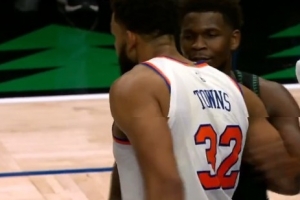 GIF-唐斯主动找爱德华兹拥抱&和康利击拳示意