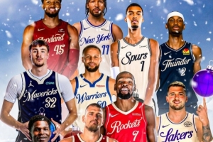 明天上午,五场圣诞大战将先后开打,分别是骑士-尼克斯、马刺-雷霆、独行侠-勇士、火箭-湖人、森林狼-掘金。