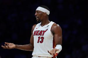 本场比赛,热火内线阿德巴约表现不错,在33分钟的时间里,投篮14中5,三分球2中1,罚球4中4,拿到15分14板2抢断的数据,正负值+17全场最高。韦尔4分13板2断2帽。
