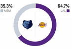 明天二番战!ESPN预测胜率:湖人64.7%灰熊35.3%