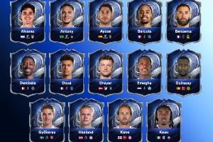 阿尔瓦雷斯、安东尼、阿约塞·佩雷斯、巴尔科拉、本泽马、登贝莱、杜埃、安德斯·德雷尔、恩梅加、吉拉西、约克雷斯、哈兰德、凯恩、基恩、克瓦拉茨赫利亚、莱万、卢卡库、劳塔罗、马特塔、姆巴佩、姆伯莫、梅西、普利西奇、C罗、希克、孙兴慜、维尼修斯