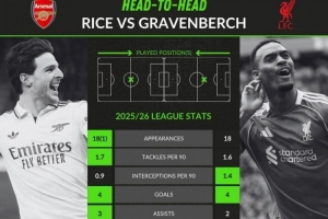 本赛季英超关键数据对比:赖斯4球3助攻、赫拉芬贝赫4球2助攻