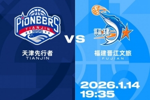 1月14日,2025-2026赛季CBA常规赛第15轮,天津先行者迎战福建晋江文旅,本场次为CBA潜力赛场次,天津5、抖音平台将同步直播本场比赛。先行者携客场胜利回归主场,再度对阵福建晋江文旅。期待球队延续良好状态与比赛气势,依托主场优势,在球迷的热情助威中全力争胜,捍卫津门主场荣耀。