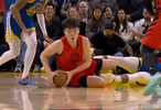 杨瀚森倒地救球,后脑勺意外顶到了勇士球员理查德的膝盖,抱头痛苦倒地,之后返回更衣室。希望小杨没事啊!