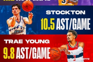 魔术师生涯场均助攻11.19次、斯托克顿为10.51次、特雷·杨为9.81次。