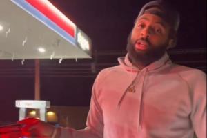 球迷在米切罗卡车上贴贴纸,贴纸内容为:“大卡车,小JJ”