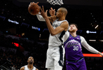 爵士这边,马尔卡宁继续缺阵,基昂特·乔治依旧很给力,只是手感欠佳,出战34分钟,20投7中,三分10投4中,罚球14中12,空砍30分3篮板6助攻1抢断,正负值-14。努尔基奇表现全面,出场26分钟,17投9中,三分4中2,拿到20分9篮板5助攻,正负值-8。菲利波夫斯基替补出场26分钟,10投4中,三分球3中0,罚球6中5,得到13分6篮板2助攻2抢断。