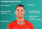 #C罗可能做过多次整容手术#据@头条新闻 :每日邮报的独家报道,纽约市顶尖整形外科医生之一埃利-莱文博士透露,自22年前在老特拉福德球场首次亮相以来,这位前锋据称接受了多次整形手术,以打造他那魁梧俊朗的外形。全文👉