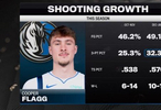 “我认为你知道他在赛季初期承担了很多,既要打控球后卫,又要努力给每个人传球,而最近几个月,他已经适应多了,他打得更加自如了,”诺维茨基说,“我会说他现在投篮时更加自信了,并不是说他改变了投篮姿势或技巧,只是带着更多信心去出手。自从更多回到他熟悉的位置后,他的节奏非常好,场均大概26分5篮板,命中率接近50%,他最近的投篮效率非常高。”