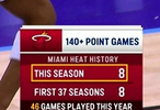 据统计,热火本赛季8次单场140+,而队史此前37个赛季合计8次。