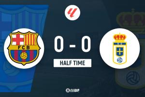 半场-莱万错失良机巴萨仅1脚射正 巴塞罗那暂0-0皇家奥维耶多